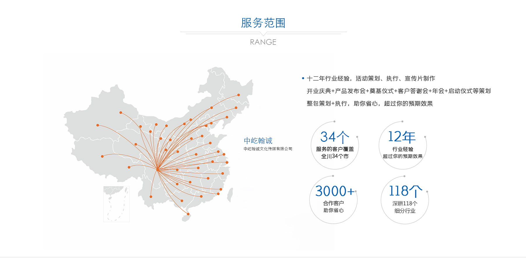 歷經多年深耕,公司已形成 “公關活動、展覽展示、品牌戰(zhàn)略服務、影視制作” 四大核心業(yè)務板塊。從創(chuàng)意策劃到落地執(zhí)行,從品牌塑造到視覺呈現,從活動運營到影像記錄,中屹翰誠始終以專業(yè)視角與創(chuàng)新理念,滿足客戶多元化需求。憑借出色的服務品質與專業(yè)能力,公司在市場中穩(wěn)步前行,服務版圖已拓展至政府、金融、媒體、演藝、建筑等 118 個細分行業(yè),與超 3000 家客戶建立深度合作關系,以實力贏得廣泛認可與信賴。